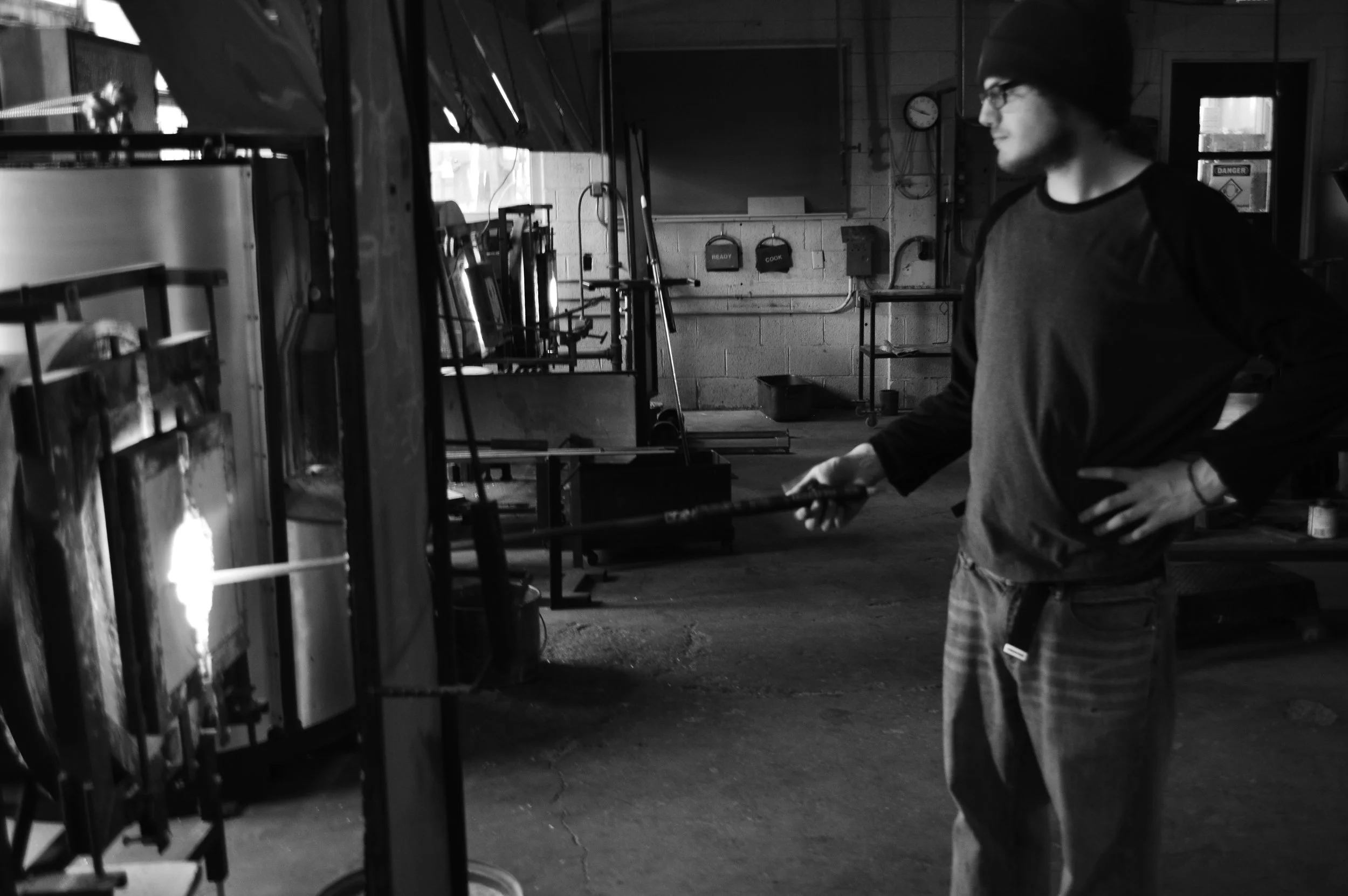 Zachary Miller has been working with glass for 14 years. Zachary has completed a Masters Degree with a concentration in glass from Kent State University. He now teaches Flameworking as adjunct faculty at Kent State while also working at Akron Glass Works helping to create custom lighting and make glass accessible to the public through workshops and demonstrations. He completes commission work both from Akron Glass Works as well as a home studio, Skillet Glass Studios located in Brimfield, Ohio.